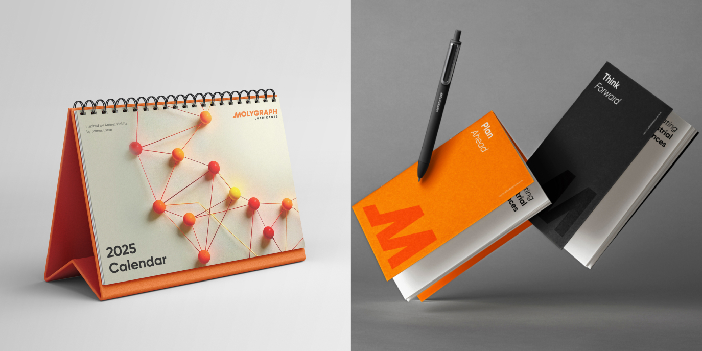 新品牌設(shè)計旨在顯得大膽、精致且簡潔,給人以動力和動感之感。字體系統(tǒng)的選擇旨在在實體和數(shù)字格式中保持清晰易讀。色彩調(diào)色板融入了Molygraph的傳統(tǒng),同時引入了一種現(xiàn)代而充滿活力的元素,在工業(yè)藍與灰的海洋中脫穎而出。