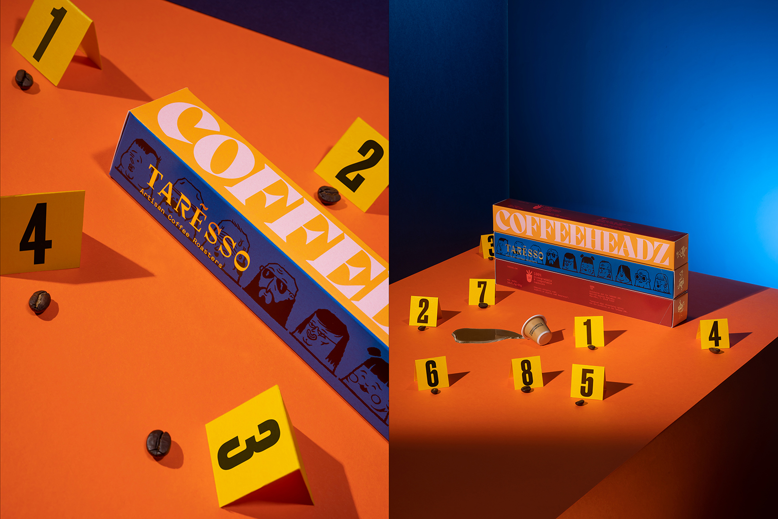 我們的任務(wù)是為希臘特色咖啡品牌 Taresso Artisan Coffee Roasters 設(shè)計膠囊系列包裝設(shè)計。由于咖啡是一種將來自不同人口統(tǒng)計和背景的不同人聚集在一起的公共體驗,因此我們強(qiáng)調(diào)了他們個性的不同方面。這些插圖描繪了 10 張不同的面孔,你不想在晚上在空蕩蕩的街道上穿過它們,它們是為了向漫畫致敬,適合膠囊的大小。這些是 Coffeeheadz,前衛(wèi),有時具有威脅性,但由于他們共同認(rèn)識到咖啡是一天中的特殊時刻而統(tǒng)一起來。信息簡單明了:在咖啡杯周圍,即使是最可疑的面孔也變得熟悉起來。