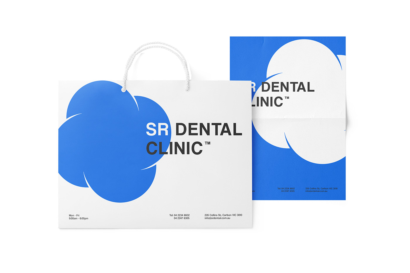 最后,圍繞簡潔的圖形建立了一個品牌形象設(shè)計,采用明亮的醫(yī)用藍色、俯視圖上一顆臼齒的抽象形狀和現(xiàn)代身份識別系統(tǒng),可以成功地應(yīng)用于古典和數(shù)字通信。