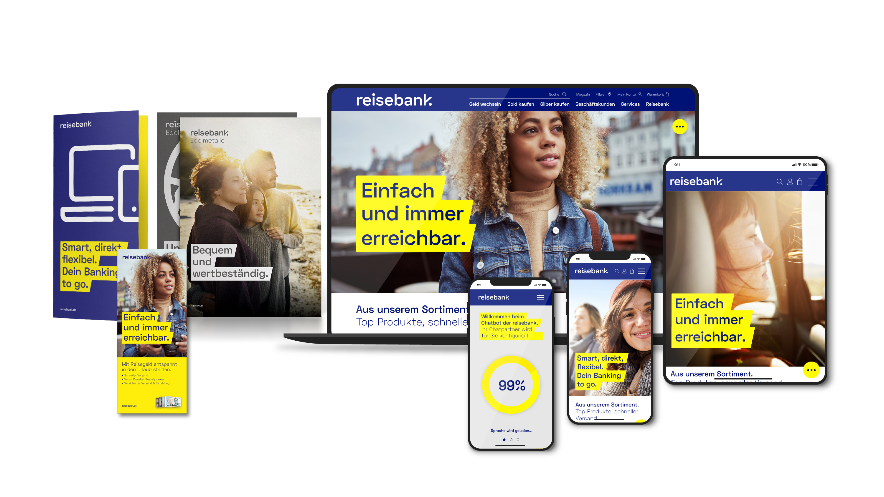 以全新方式體驗(yàn)市場(chǎng)領(lǐng)導(dǎo)者,多年來,Reisebank AG 已成為德國(guó)旅行貨幣和外幣市場(chǎng)的領(lǐng)導(dǎo)者,如今已成為 DZ BANK 集團(tuán)以及合作金融集團(tuán)內(nèi)久經(jīng)考驗(yàn)的現(xiàn)金專家。隨著 Reisebank 的業(yè)務(wù)領(lǐng)域和服務(wù)范圍的逐步擴(kuò)展 - 除了與旅行相關(guān)的服務(wù) - 有針對(duì)性的升級(jí)和外觀現(xiàn)代化的潛力變得明顯 - 也是為了能夠在未來吸引特別苛刻的目標(biāo)群體,例如不同范圍的貴金屬。