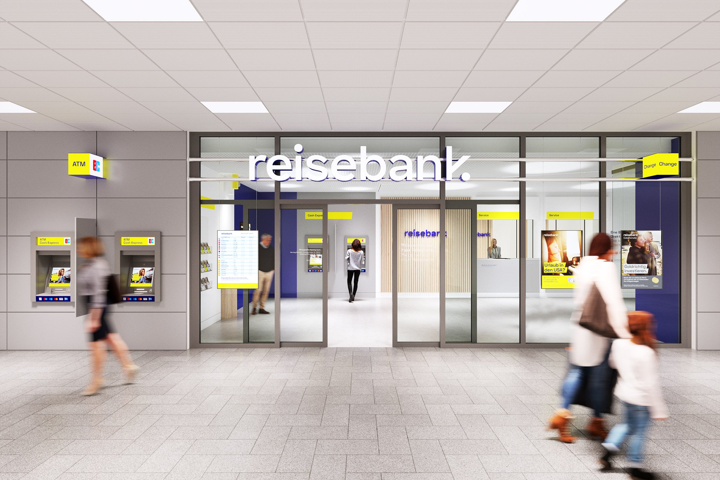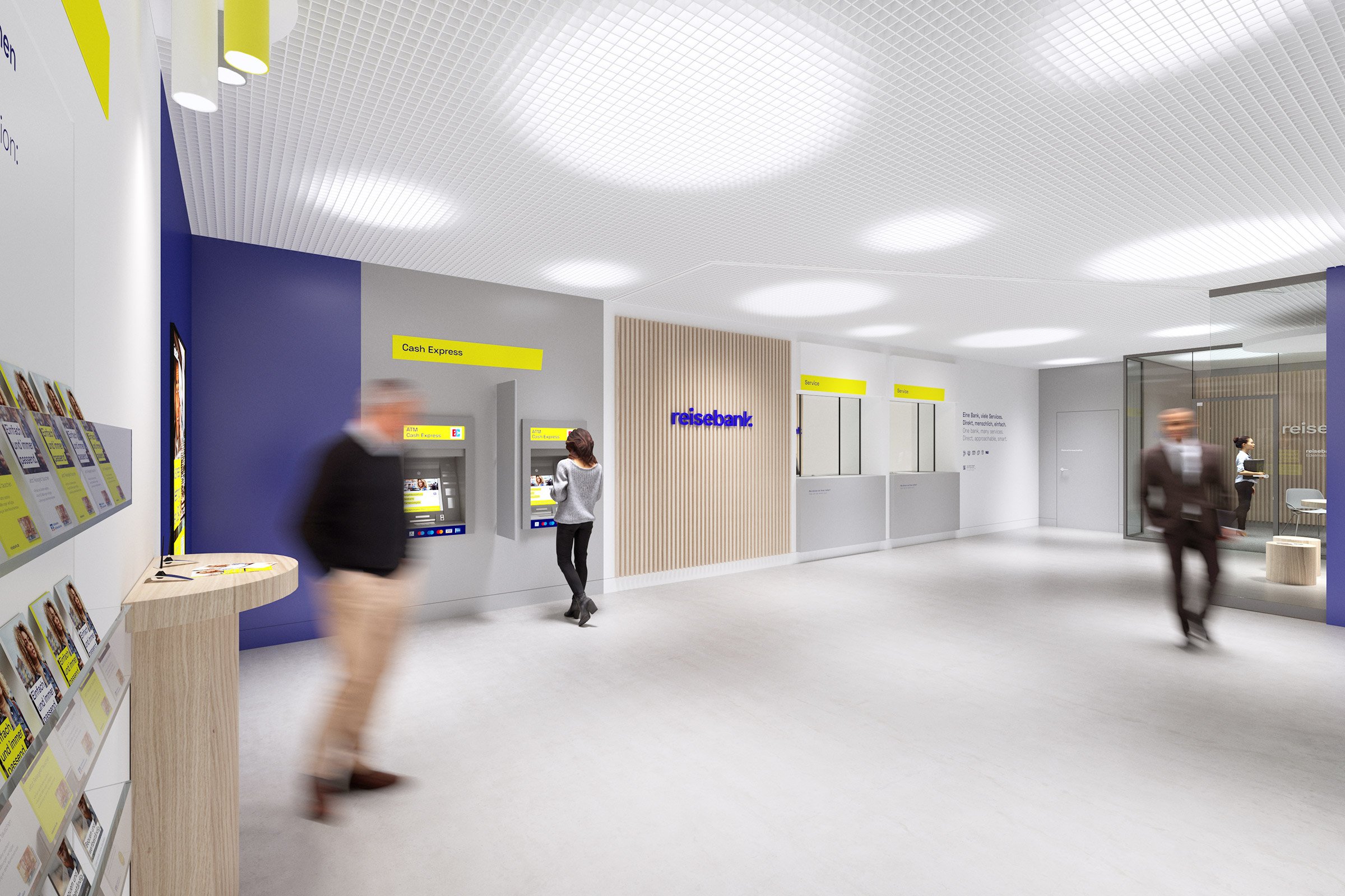 在持續(xù)自動(dòng)化的背景下,自動(dòng)售貨機(jī)被規(guī)劃為“小分支”,額外提高了火車站、機(jī)場(chǎng)或市中心的品牌知名度。凝聚力和清晰的整體外觀創(chuàng)造了對(duì) Reisebank 的新信任。