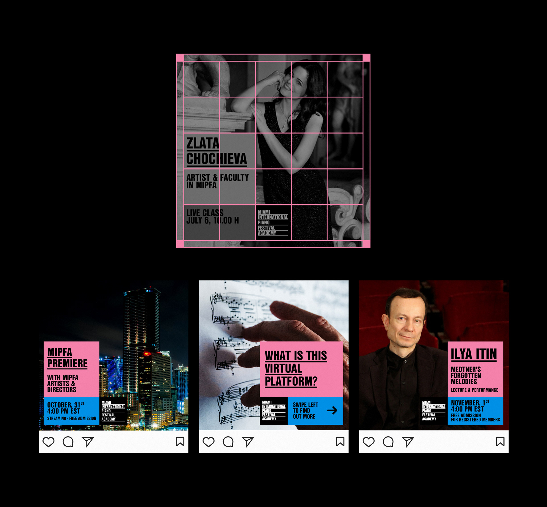 邁阿密國際鋼琴節(jié)學(xué)院,MIPFA決定創(chuàng)建一個在線平臺,提供世界上一些最好的鋼琴家的課程、現(xiàn)場課程和其他功能。學(xué)院需要一個新的身份來重新定位為一個當(dāng)代和數(shù)字化的機(jī)構(gòu),旨在激勵下一代鋼琴家大師。