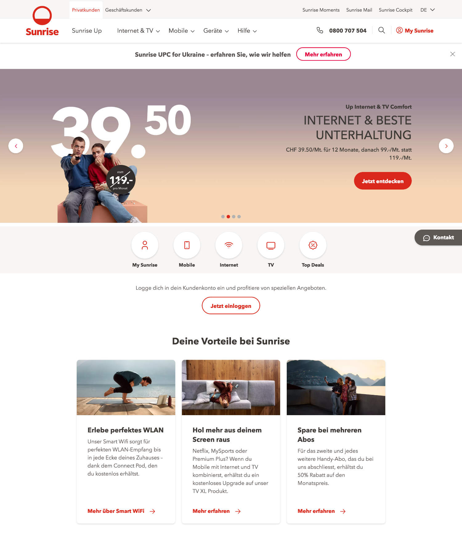 瑞士電信公司Sunrise UPC于2020年底從UPC有線網(wǎng)絡(luò)運(yùn)營商與手機(jī)提供商Sunrise合并中誕生,對(duì)其品牌進(jìn)行了排序。日出將成為未來的主要品牌,同時(shí)獲得新的