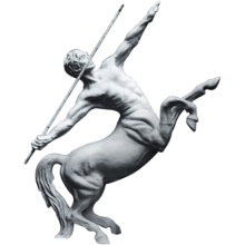 寓意和由來(lái):在希臘神話(huà)中,人頭馬又稱(chēng)為半人馬。在古希臘有個(gè)王國(guó)叫塞薩里亞國(guó),國(guó)王是伊克西翁(戰(zhàn)神阿瑞斯與一凡女所生)。他因?yàn)橛猩竦难夑P(guān)系,竟大膽地愛(ài)上了天后赫拉,并窮追不舍。天后為了躲避伊克西翁的追求,搖身一變化作一片祥云。伊克西翁不顧一切地?fù)淞诉M(jìn)去,結(jié)果在這片祥云里生下一個(gè)怪物:怪物上半身完全是個(gè)人,有頭、眼、鼻、耳、口、雙臂和雙手,而下半身則是馬,有四條腿和馬身馬尾。希臘語(yǔ)叫 肯達(dá)夫羅斯 ,中文譯作人頭馬。他們一般被描寫(xiě)為粗野、狂暴和不講道理。一般他們被作為野蠻的代表,與人相反,但也有少數(shù)(如凱?。┦欠浅S兄R(shí)和有教養(yǎng)的,半人馬總是帶著弓箭。
