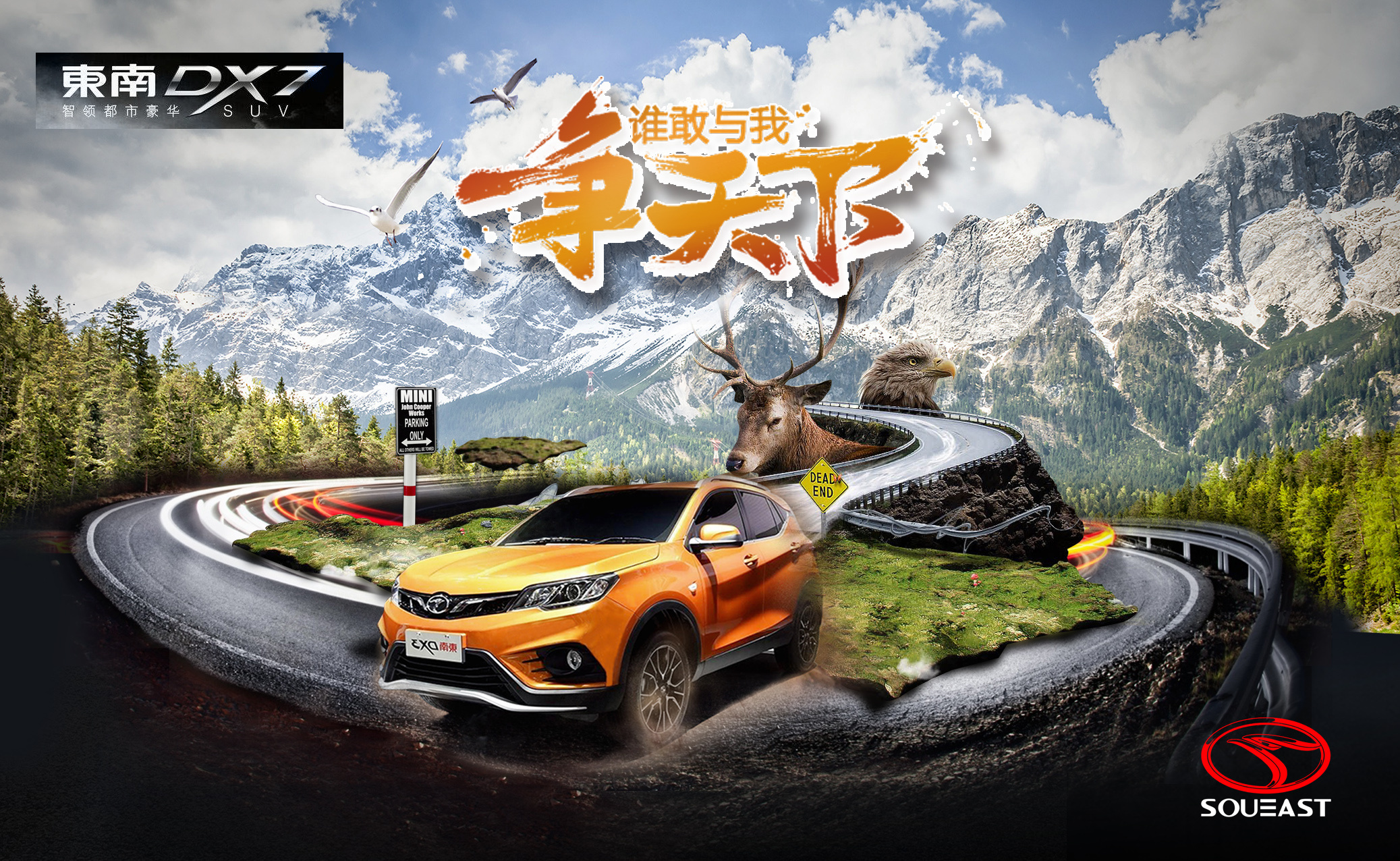 橢圓的形狀象征著源源不斷的能量感,更像是一個永遠追求進步和卓越的靈魂,“鵬鳥”的頭部造型設計,由東南昂首朝上,表現(xiàn)出振翅欲飛的態(tài)勢,表現(xiàn)出企業(yè)旺盛、強烈的進取心及能力,“鵬鳥”造型整體由“SOUTH”和”EAST”的首字母變幻組成,意指東南汽車。